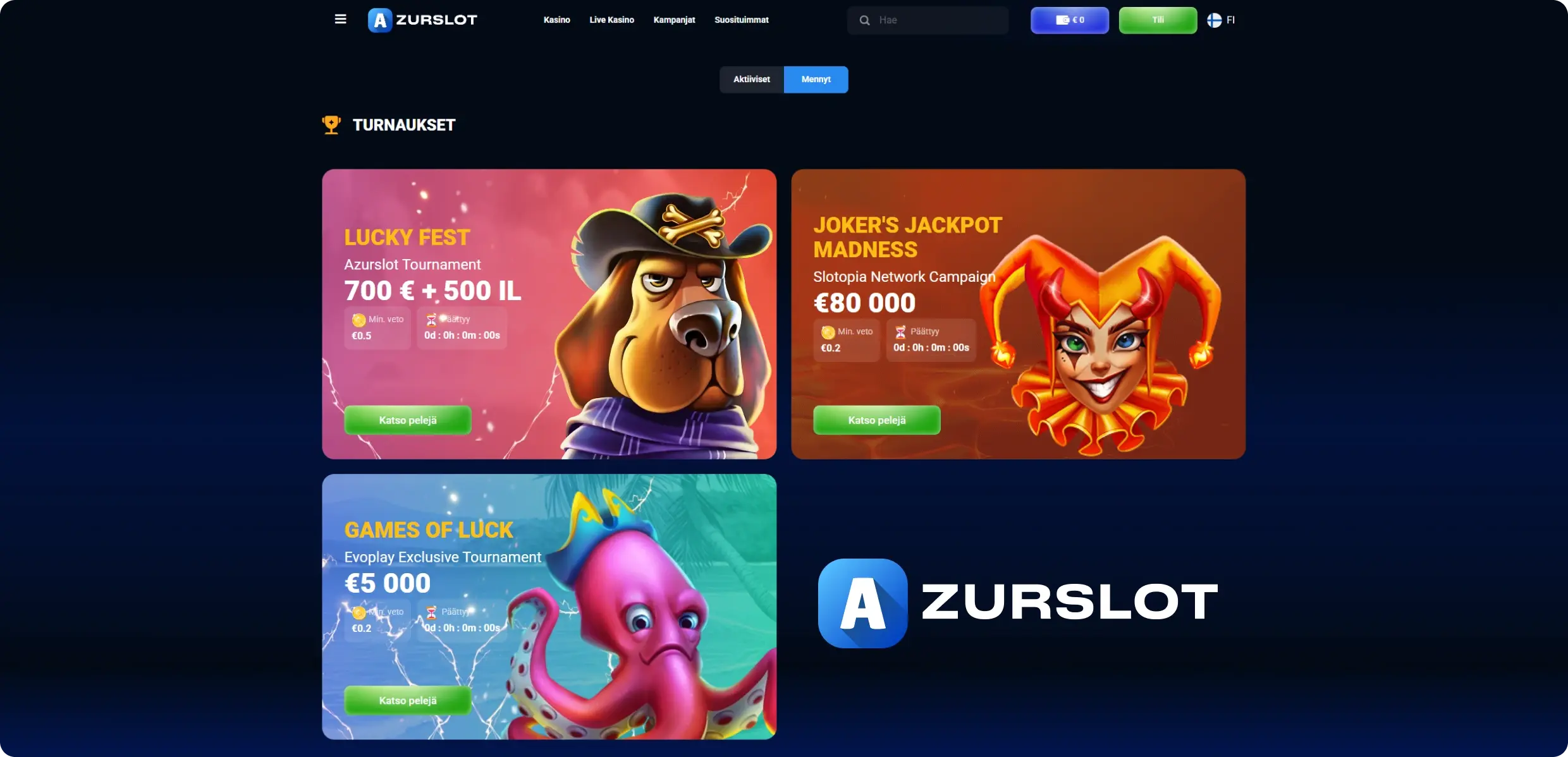 Azur Slot erottuu edukseen turnaustarjonnallaan. Kasino järjestää säännöllisesti erilaisia kolikkopeliturnauksia, joissa pelaajat pääsevät kilpailemaan keskenään suurista palkinnoista. Turnauksissa kerätään pisteitä esimerkiksi voittojen määrän, panostason tai pelattujen kierrosten perusteella – ja mitä korkeammalle sijoitut tulostaulukossa, sitä paremmat palkinnot voit napata.